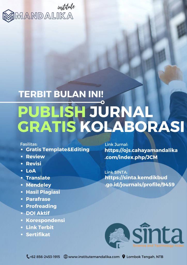 Mandalika Institute adalah lembaga resmi berbadan hukum mengedepankan Progresif Kebersamaan dalam menjunjung tinggi nilai Komplementer, Mandalika Institute sebagai Penyedia Jasa layanan Publikasi Jurnal Lengkap, mulai dari Proses penerbitan hingga naskah terindeks dan telah terdaftar sebagai penerbit resmi direktorat jenderal pendidikan tinggi kementerian pendidikan kebudayaan riset dan teknologi RI Nomor 204/E/KPT/2022.